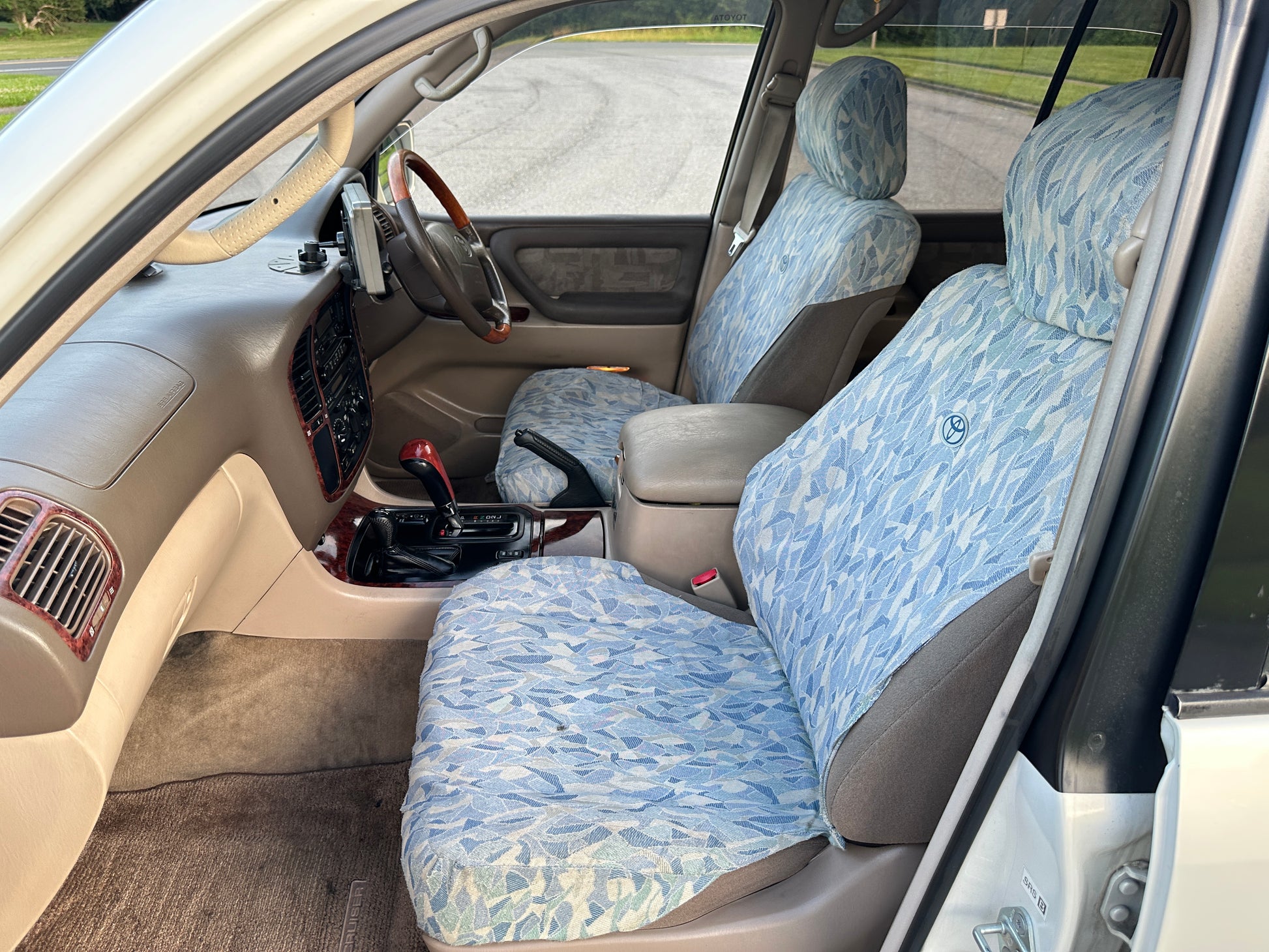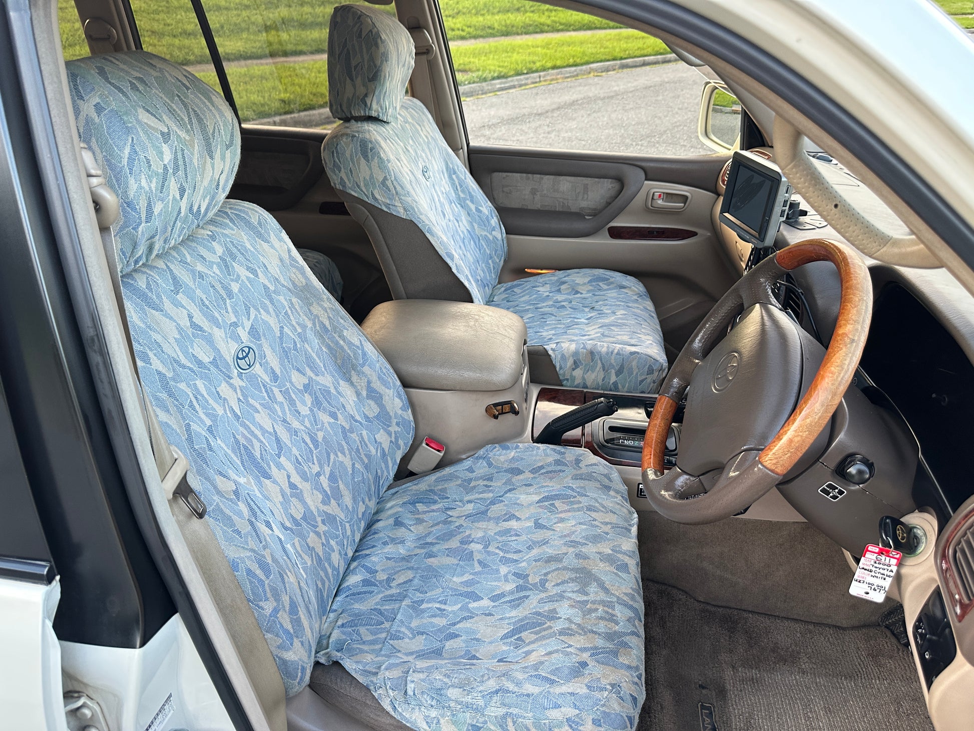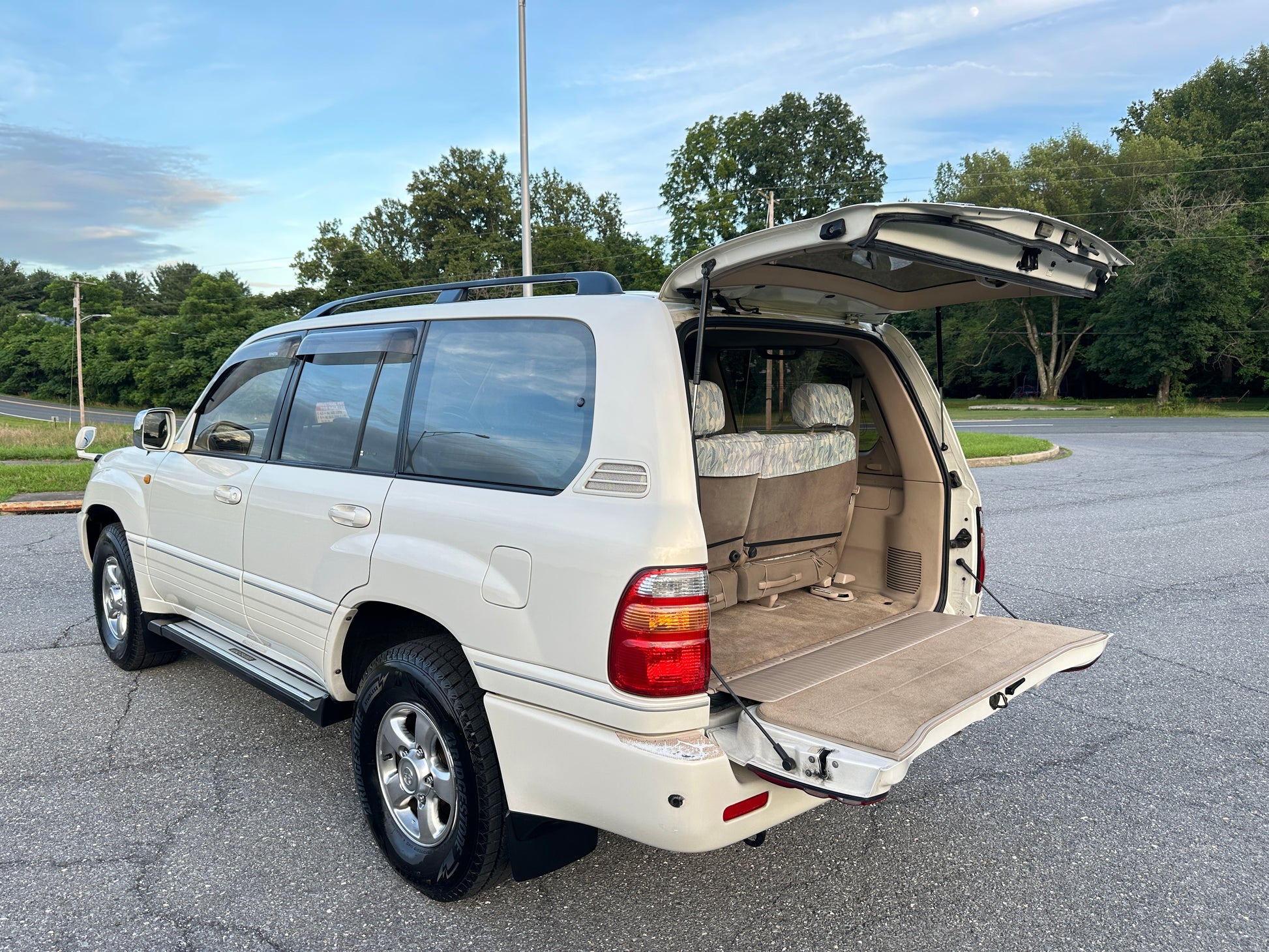 2000 TOYOTA LAND CRUISER UZJ100 VX LIMITED ——166,263 Miles, “2UZ-FE”, 4.7 Liter V8, Automatic Transmission, FullTime 4WD, 2- Speed TransferCase, Center Locking Differential, White Pearl (057), Patterned Brown Cloth Upholstery With OEM Toyota Seat Covers, Dual Front SRS Airbags, ABS, Tilt- Adjust Steering Column, OEM Woodgrain Steering Wheel, Power Adjustable Seats, Heated Passenger & Driver Seat, Dual Zone Climate Control, Cold A/C, Power Windows, Power Remote Lock, Power Folding Mirrors, Privacy Tint, OEM Skid Plate, OEM RainGuards, CRUISE CONTROL, OEM HEIGHT ADJUSTABLE SUSPENSION, 16” Toyota Wheels, SUNROOF, 3rd Row Seating, Bash-Bar with CIBIE Fog Lights.