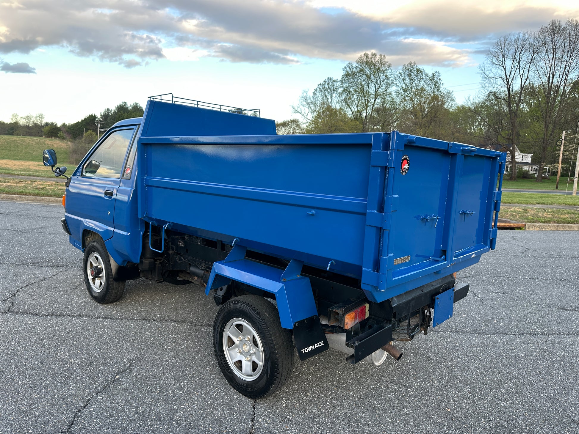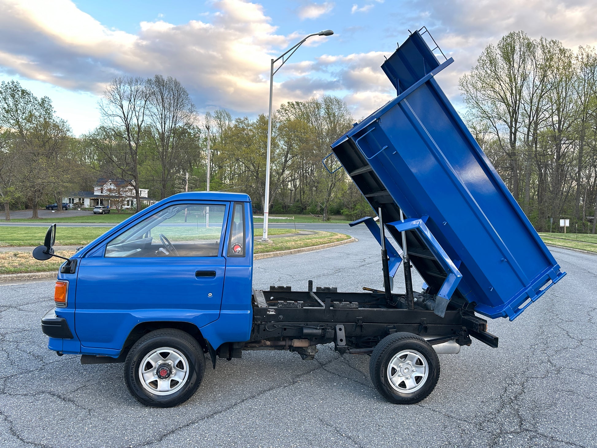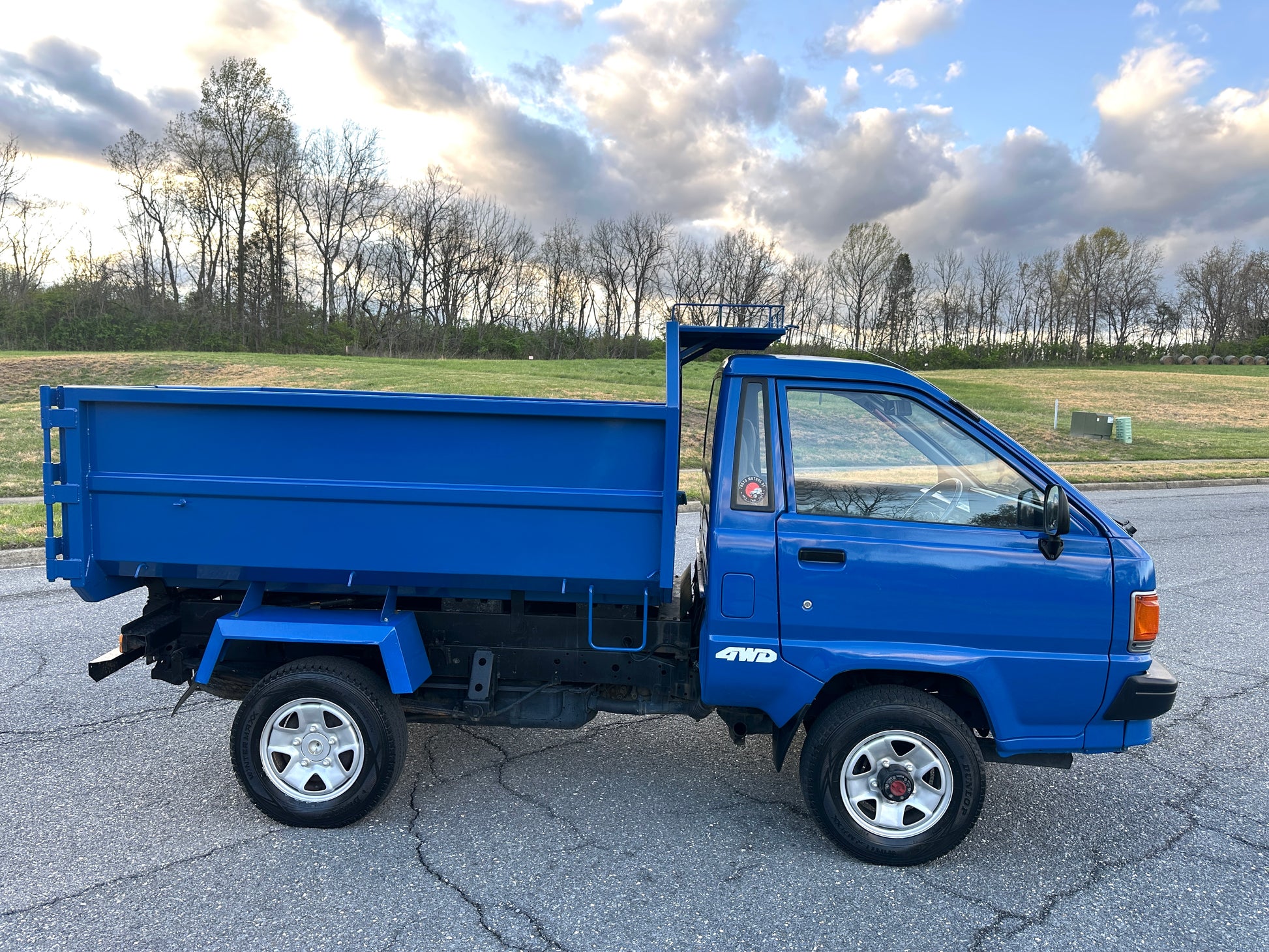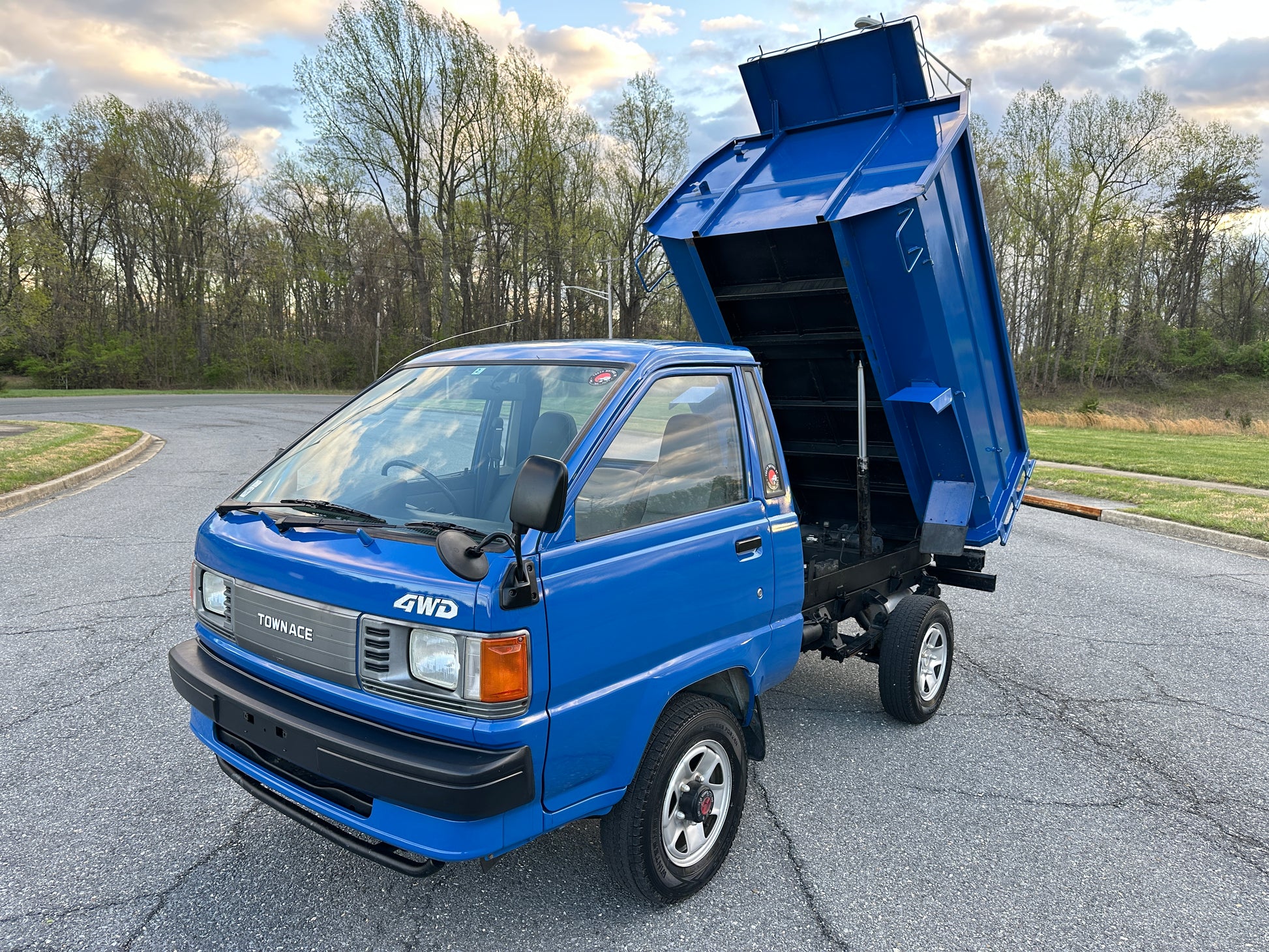 1990 TOYOTA TOWNACE YM60——103,324 MILES. “2Y” 1812cc, Inline Four, Gasoline, Column-Shifted 4 Speed Manual Transmission, Floor Shifted 2 Speed Transfer Case, Push Button 4WD, Aisin Manually Locking Front Hubs, Blue Paint (8E5), 60/40 Split Seat With A Center Armrest, Manual Windows, TECS HIGH-SIDE DUMP BED with a 750KG Payload Capacity, Heat & A/C (non-functional ac), New Battery, Recently Rebuilt Hydraulic Dump Cylinders, New Interior & Door Panels.