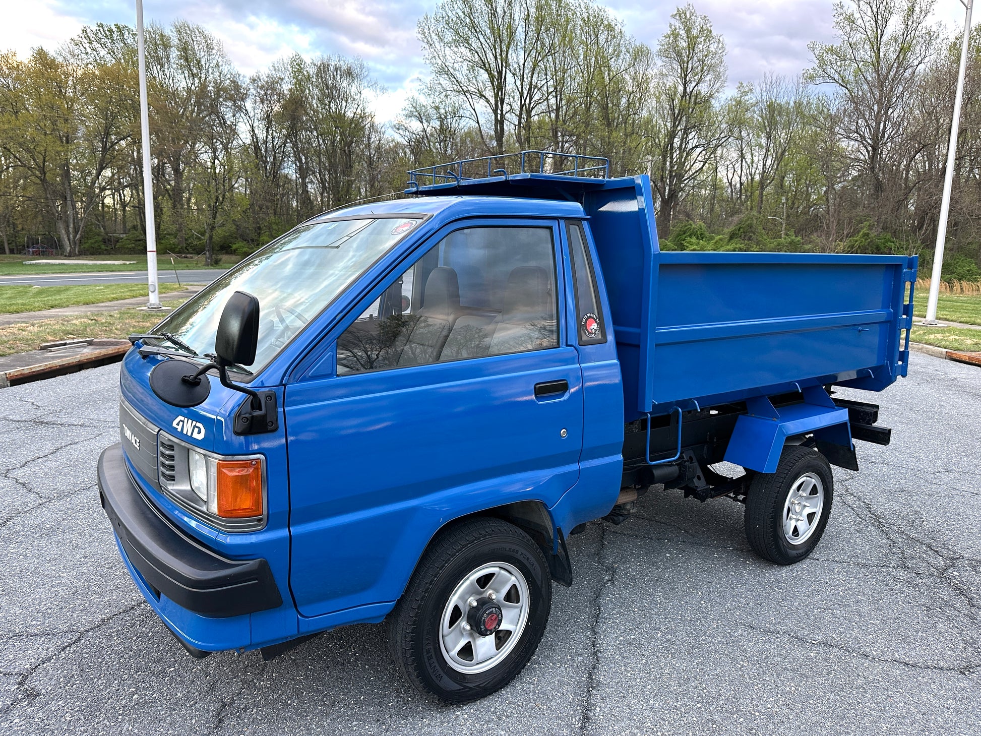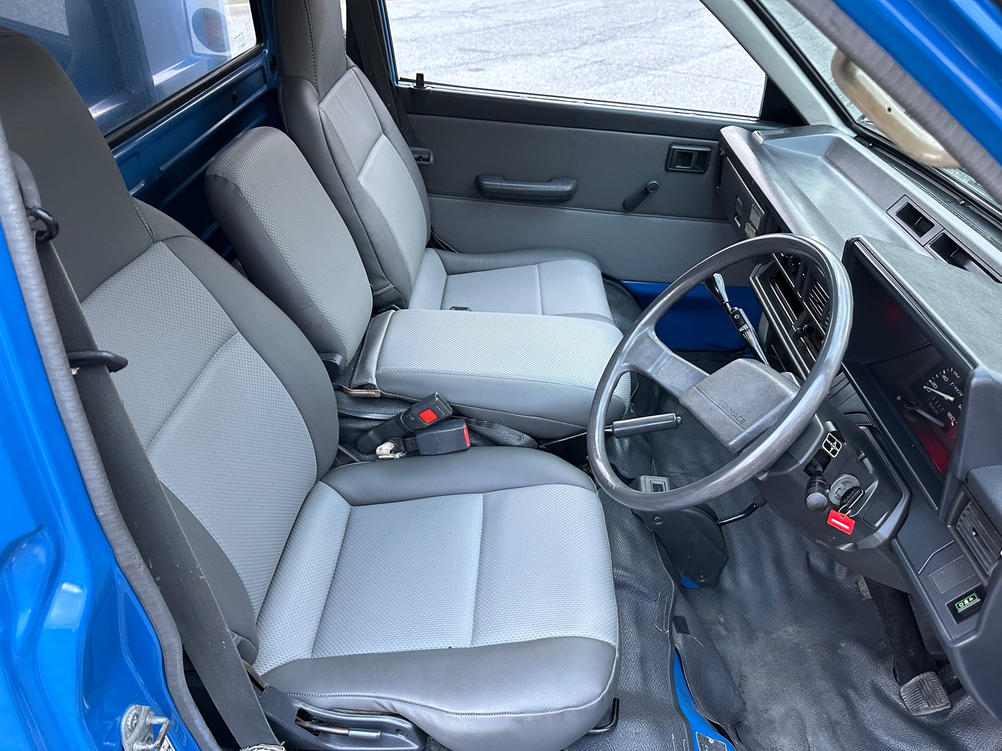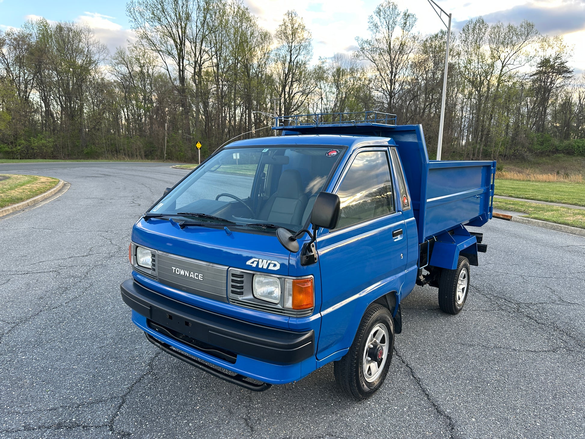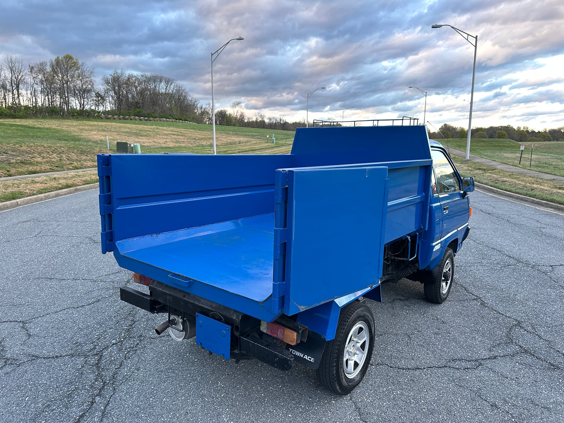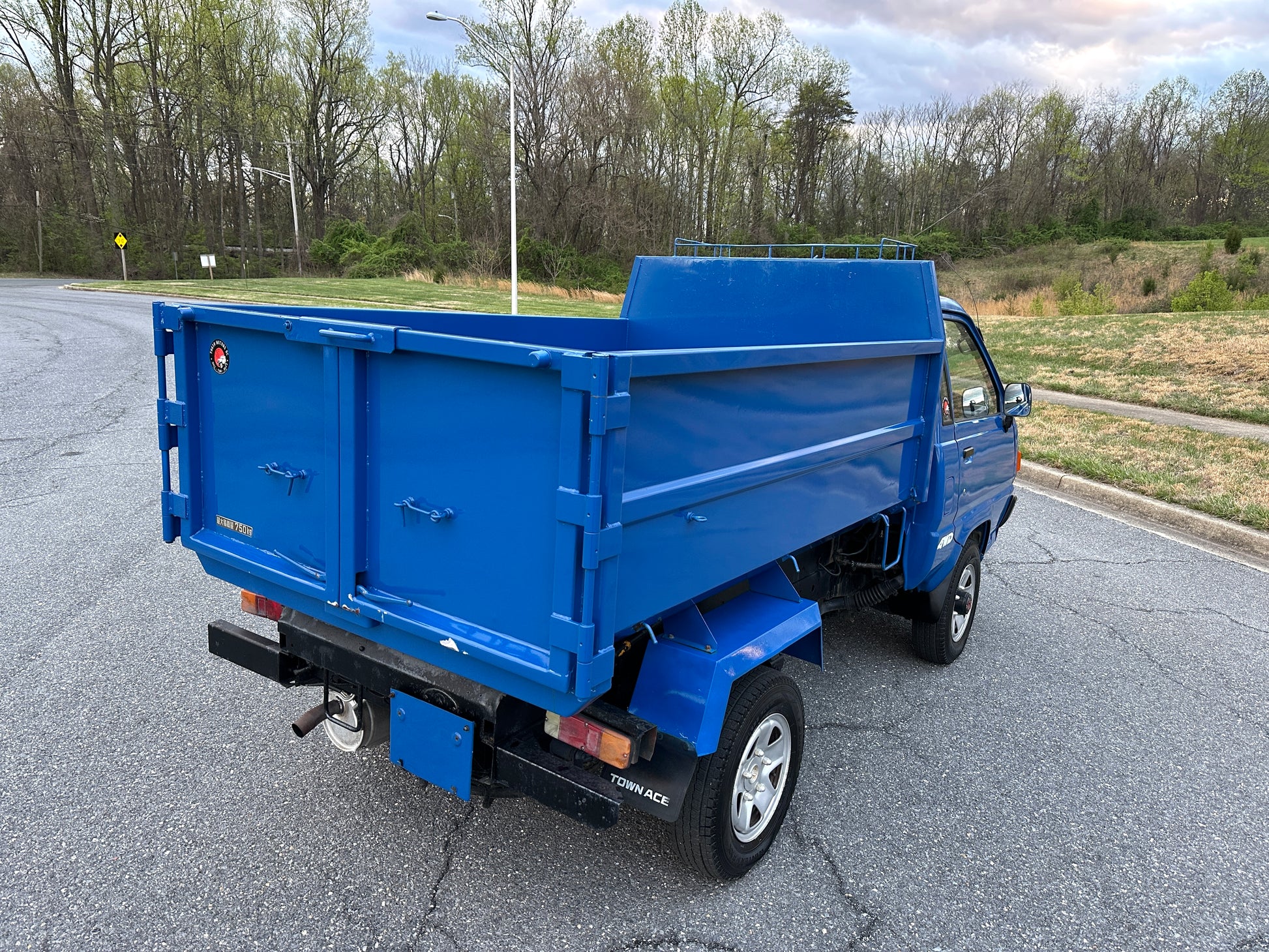 1990 TOYOTA TOWNACE YM60——103,324 MILES. “2Y” 1812cc, Inline Four, Gasoline, Column-Shifted 4 Speed Manual Transmission, Floor Shifted 2 Speed Transfer Case, Push Button 4WD, Aisin Manually Locking Front Hubs, Blue Paint (8E5), 60/40 Split Seat With A Center Armrest, Manual Windows, TECS HIGH-SIDE DUMP BED with a 750KG Payload Capacity, Heat & A/C (non-functional ac), New Battery, Recently Rebuilt Hydraulic Dump Cylinders, New Interior & Door Panels.