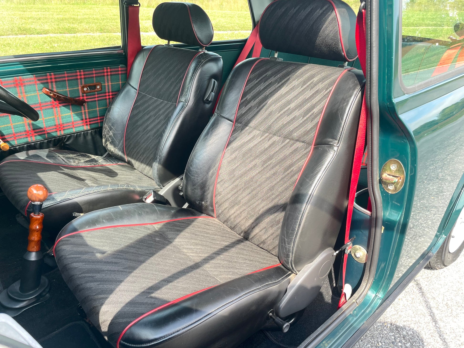 This 1995 Rover Mini Tartan is the perfect blend of iconic styling and classic design. With only 8,433 miles (TMU), it’s in pristine condition both inside and out. The British Racing Green exterior with a white roof is a timeless color combo, while the green & red tartan interior with bold red seatbelts adds a unique flair!